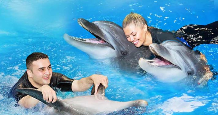Daily swimming with dolphins sessions allow visitors a once in a life-time experience, suitable for visitors from 5 years onwards.