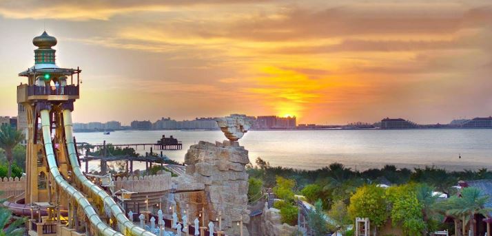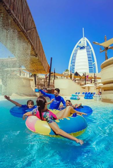 Wild Wadi Waterpark is designed around a tale from Arabian folklore featuring Juha and his seafaring friend Sinbad. The waterpark has over 30 rides and attractions, 13 of them are interconnecting water rides. Together, the Wipeout and Riptide Flow riders offer the ultimate surfing experience with realistic wave effects.